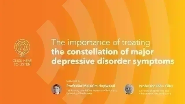 Listen to Prof. Malcolm Hopwood, the Ramsay Health Care Professor of Psychiatry, University of Melbourne speak to Prof. John Tiller, University of Melbourne and Albert Road Clinic, Melbourne, about the importance of treating the constellation of major depressive disorder symptoms.